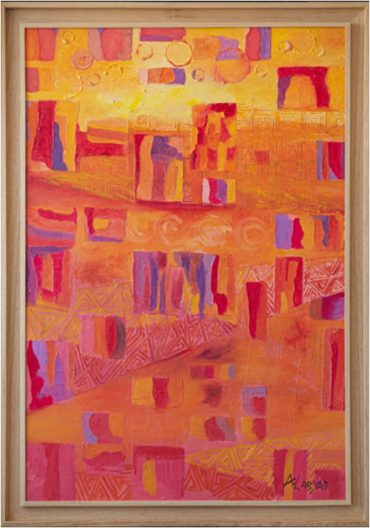 Les formes s’organisent en une composition tendant à évoquer un tissage ancestral. Peut-il exister un dialogue entre le geste pictural et l’héritage du tapis berbère?