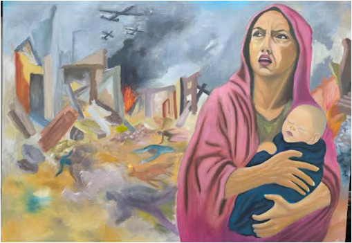 Le ciel s’ouvre en flammes,les murs tombent, les voix s’éteignent.Mais dans ses bras, un enfant respire.L’homme détruit, l’homme engendre et l’humanité vacilleentre berceau et cendre.